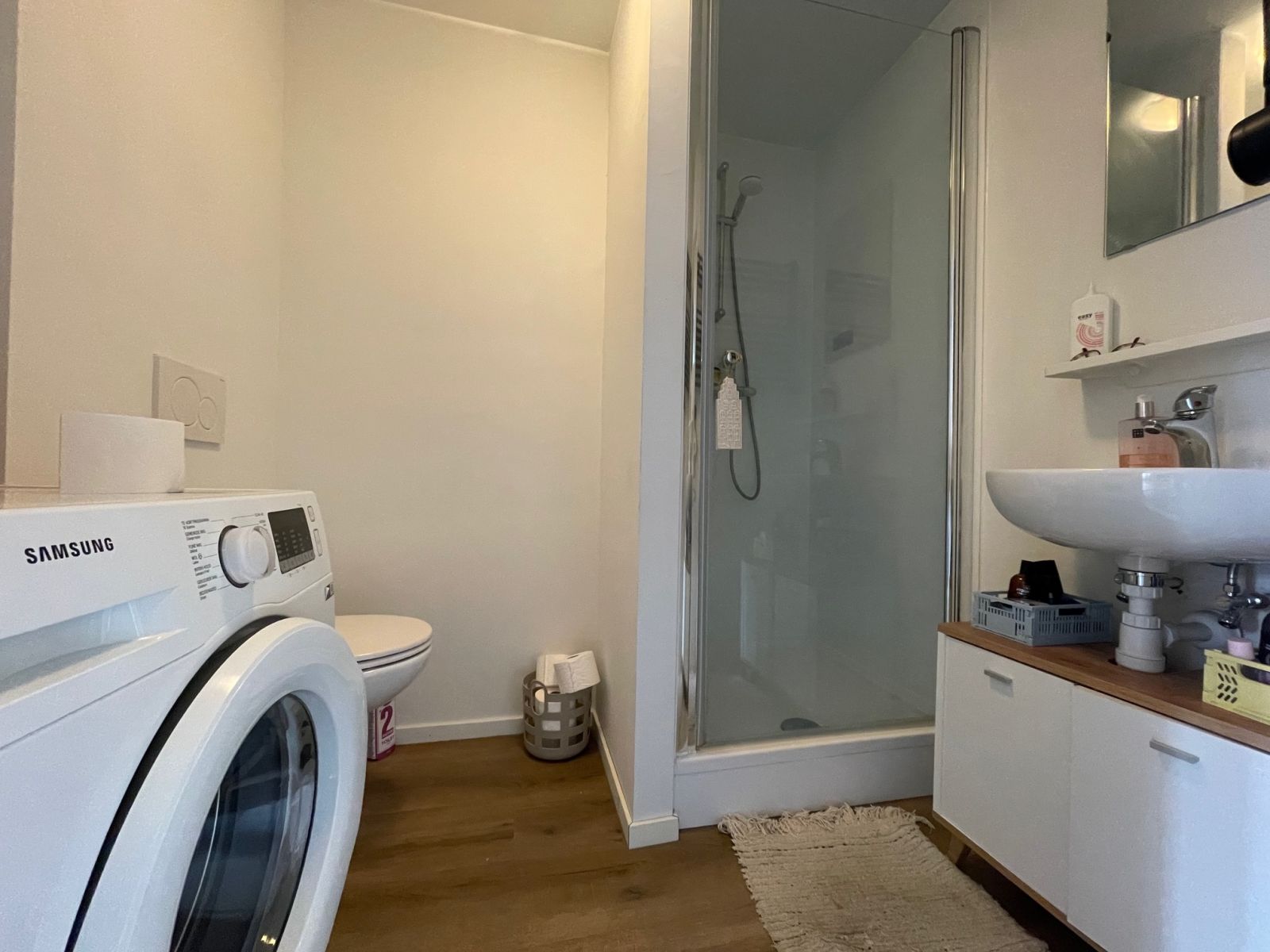 De woning bevindt zich op de tweede verdieping. De bovenverdiepingen zijn te bereiken via de trap. Bij binnenkomst tref je een ruime, lichte woonkamer met aansluitend het balkon aan de voorzijde, verder beschikt de woonkamer een open keuken. De keuken is voorzien van kookplaat, afzuiginstallatie en koel- met vriesvak. Aan de achterkant van het pand bevindt zich de aparte slaapkamer met aansluitend nog een kamer dat gestitueerd kan worden als werkplek of inloopkast. De badkamer is voorzien van douchecabine, wastafel, handdoekradiator en toilet. Ook is er in de badkamer ruimte voor de wasmachine. De woning is voorzien van een mooie PVC-vloer. Er kan gebruik worden gemaakt van een gedeeld terras aan de achterzijde van het pand.
