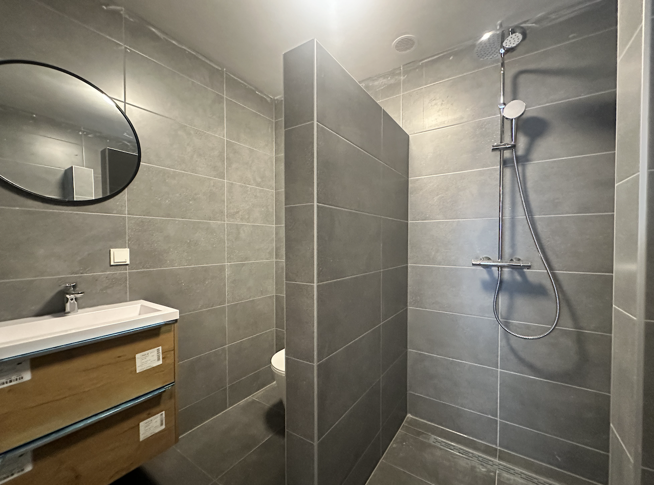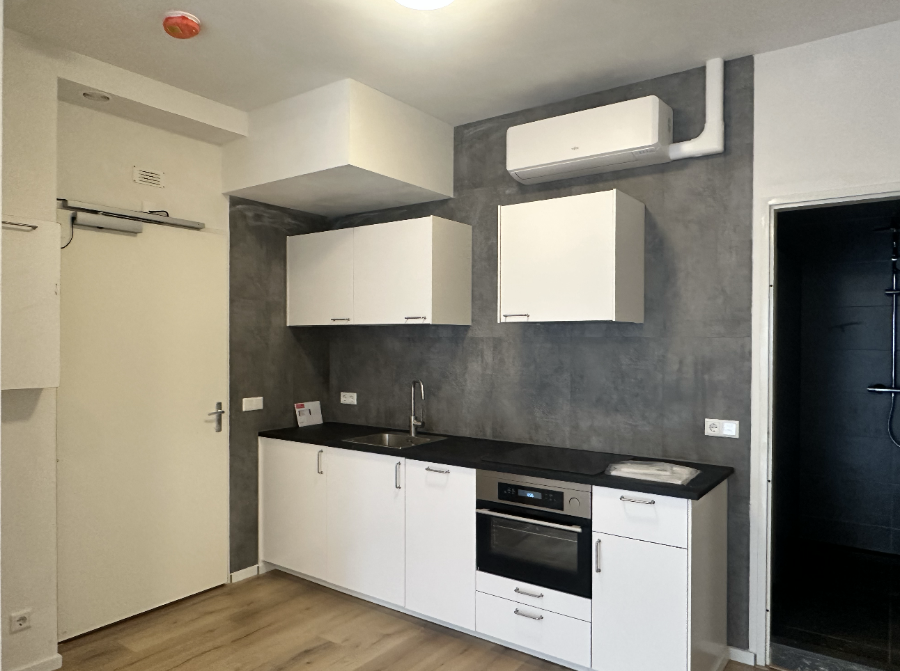 De woon-/slaapkamer van 27 m2 beschikt over een (split)airco waarmee de studio zowel verwarmd als verkoeld kan worden, de keuken is voorzien van een luxe mengkraan, spoelbak, inductiekookplaat, vaatwasser, koelkast (met vriesvakje), afzuigkap en een combimagnetron. De badkamer is voorzien van een inloop (regen)douche, een hangend toilet en een wastafelmeubel.