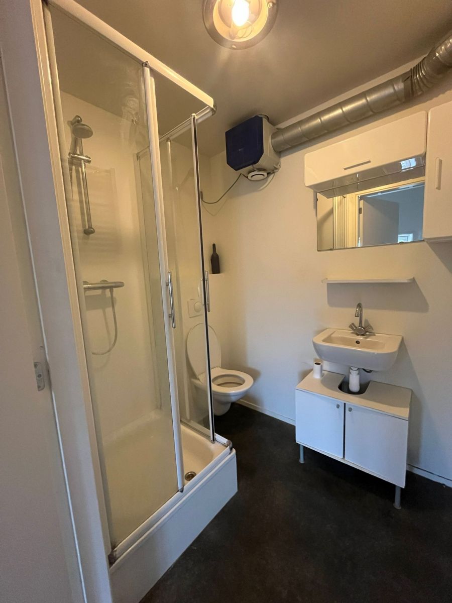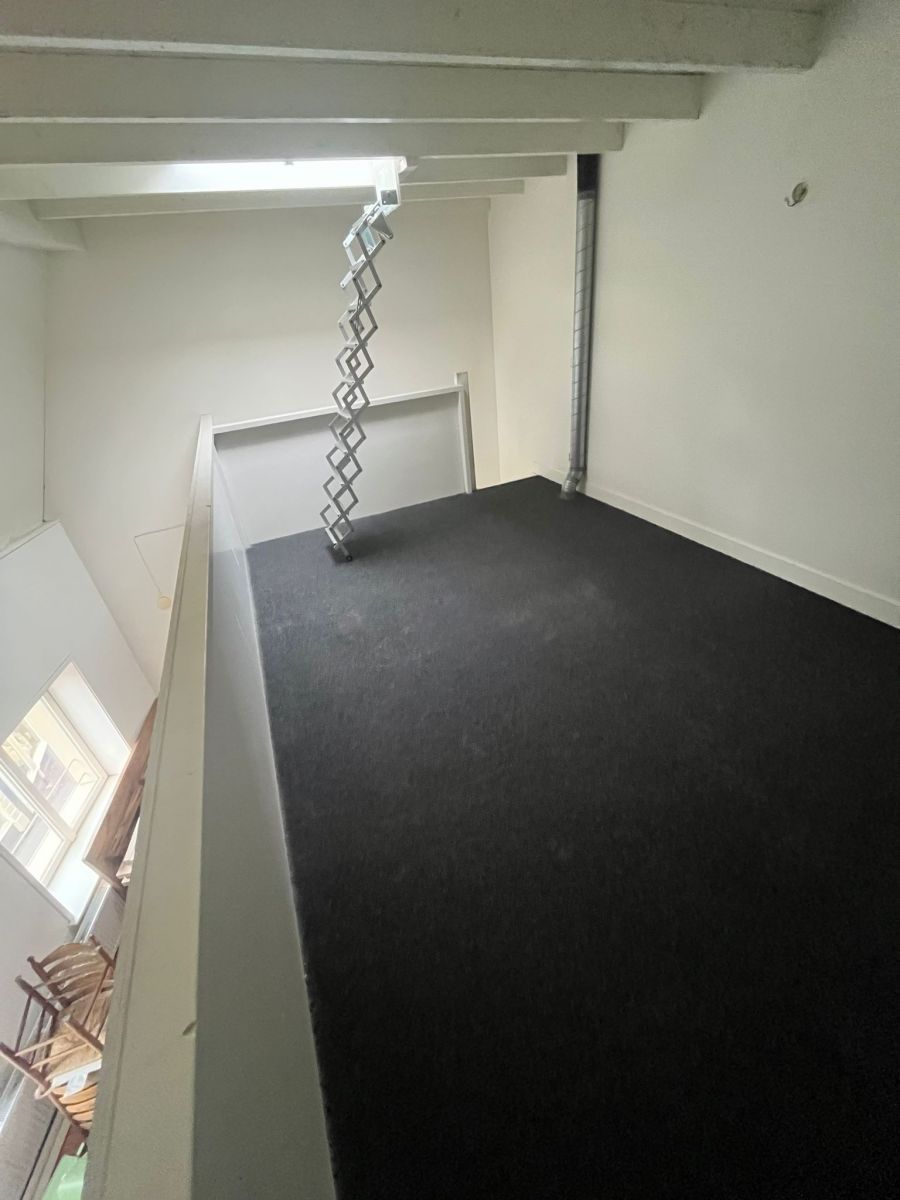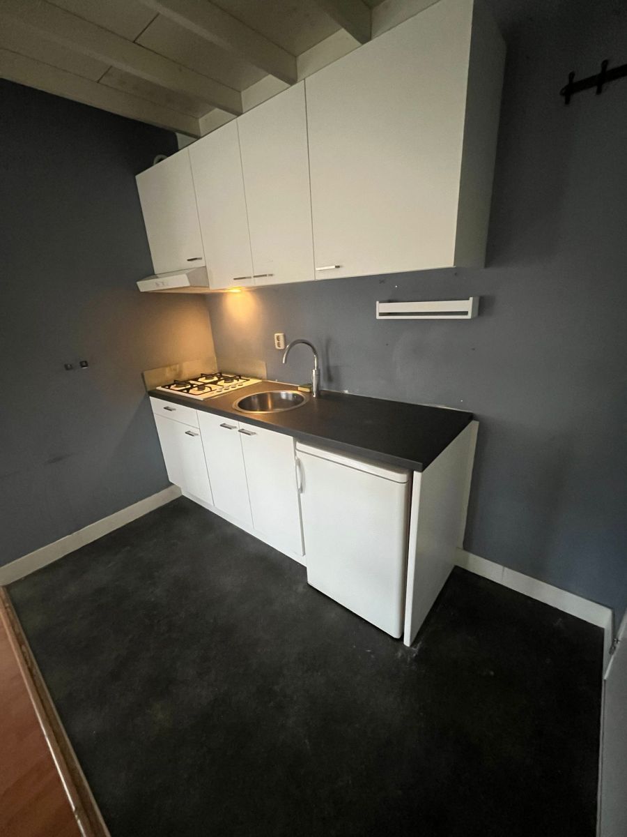 Woonkamer met een open keuken die voorzien is van diverse inbouwapparatuur zoals een koelkast met vriesvak, afzuigkap en een gasfornuis. De badkamer beschikt over een toilet, wastafel, douchecabine en handdoekradiator. Middels een trap bereikt u een vide, dit is tevens het slaapvertrek. Via een opvouwbare trap heeft u de mogelijkheid om gebruik te maken van het dakterras. In de kelder van het complex bevinden zich de bergingen. Daarnaast worden wasmachine en droger gedeeld.