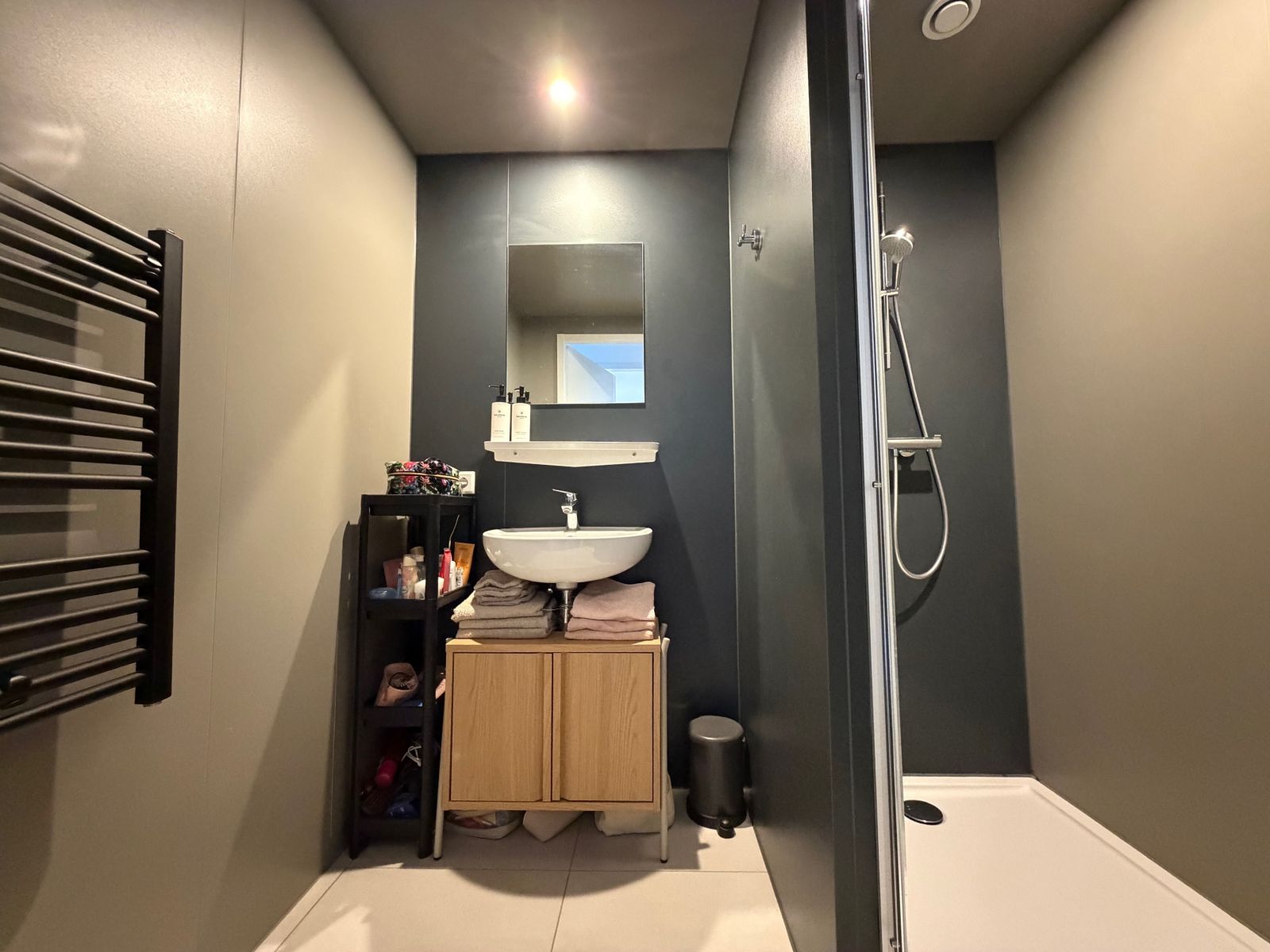De ruime slaapkamer biedt meer dan genoeg ruimte voor een bed en kledingkasten. De badkamer is voorzien van een wastafel en een inloopdouche. Daarnaast is er een separaat toilet aanwezig. Ook beschik je bij dit appartement over een berging met wasmachineaansluiting.